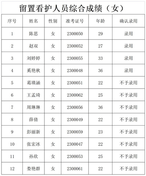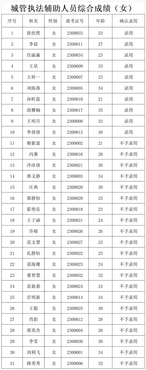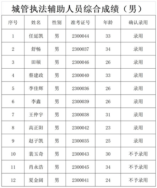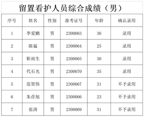 关于双滦区招聘城管执法辅助人员及留置看护辅警人员综合成绩公示